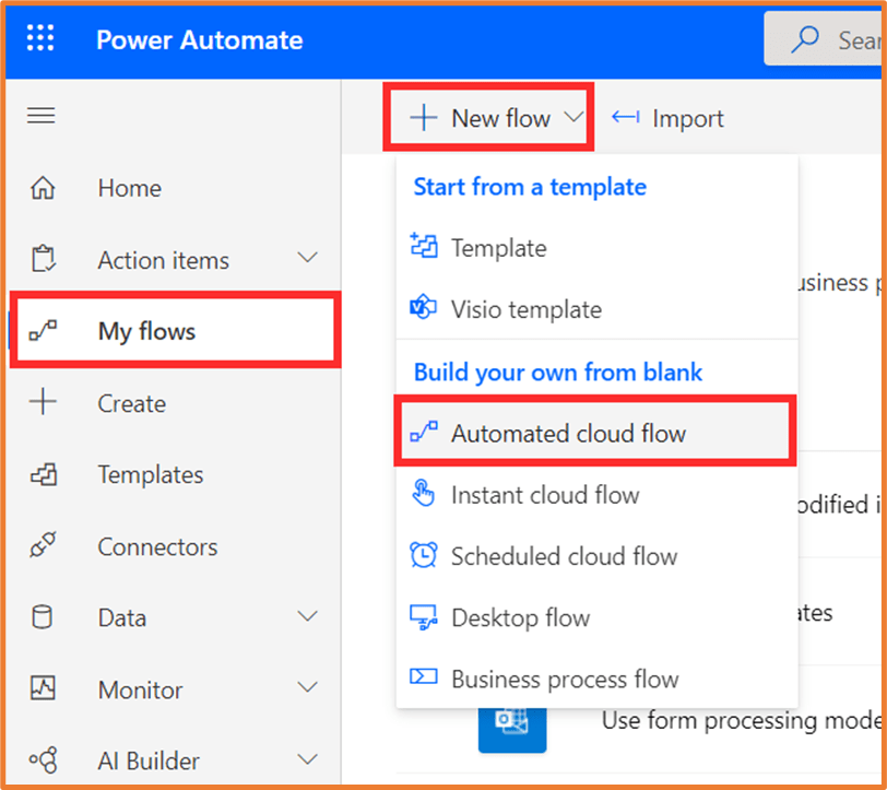 Begin by going to Power Automate and creating a new Automated cloud flow.
