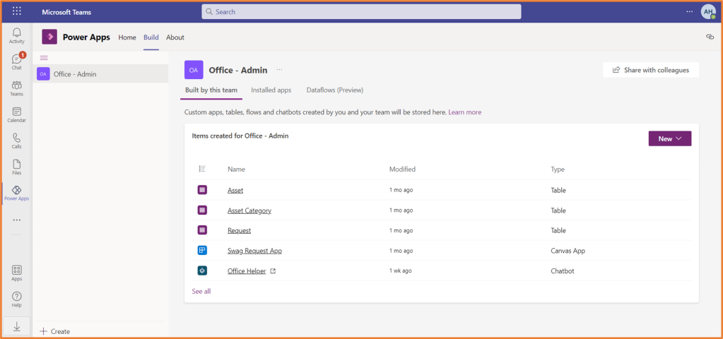When you originally created your Power App, chatbot or Dataverse table, you would have selected a Team for it to live in. You can see all these creations by launching the Power Apps app.