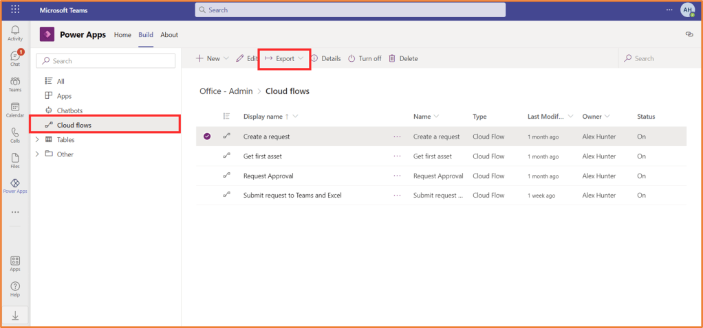 I’ve had this question come up quite often from people using Microsoft Teams to build Power Platform solutions- whether it’s Power Apps, Power Virtual Agents, Power Automate flows or Teams Dataverse tables. As with solutions built in a full Dataverse environment (i.e. outside of Teams) you can save and export a .zip file of your Teams-based creations. This can be done either via the Power Apps Teams app or the Power Automate website.