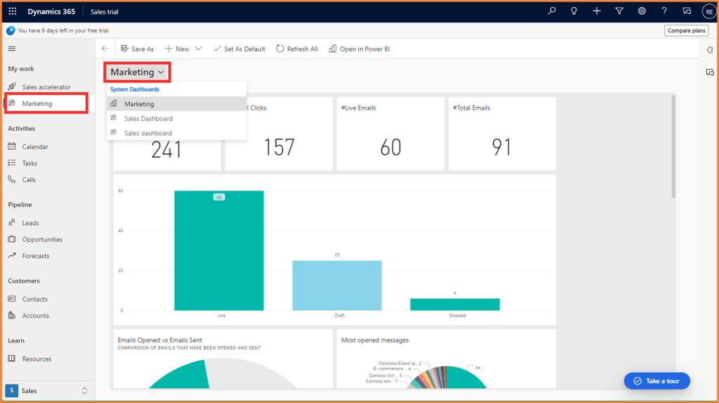A system dashboard in a model-driven app provides users an area to access reports that have been built into the app, or are embedded from Power BI. If you’ve build a report or dashboard in Power BI, you can make it accessible to your app users by first adding it to your app solution then configuring the app system dashboards.
