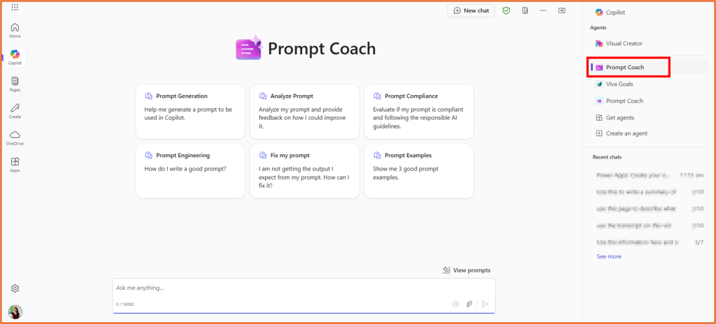 You will now be able to launch and use the Prompt Coach agent You can find it in the Copilot app in Microsoft Teams, or use it in your web browser at: