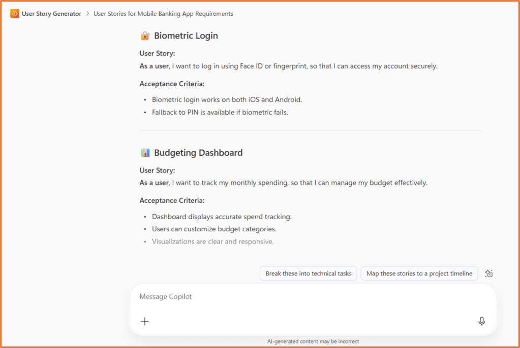 This post is part of a series that provides an example configuration for a Copilot Chat agent that can assist you with writing user stories for project requirements. This uses the Agent Builder tool. You can refine the instructions as you need.