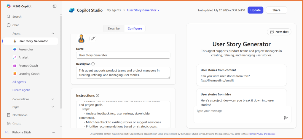 If you are new to Agent Builder, begin here for an overview of how to get started: Build a no-code agent in Copilot Chat – Rishona Elijah
