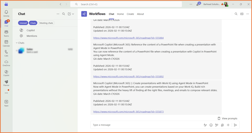Microsoft releases Copilot updates constantly. New features appear on the roadmap, timelines change and previews quietly roll out. To stay on top of what is new and upcoming, you can browse the M365 Roadmap https://www.microsoft.com/en-au/microsoft-365/roadmap. With Power Automate, you can use the RSS feed of the roadmap to get notified straight away when Copilot-related topics are created or updated. The flow will send you a Teams message of the feature details.